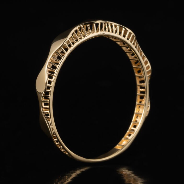 Anel em ouro 18K com a palavra “Fé” trabalhada em destaque. Design elegante e minimalista, perfeito para quem busca uma joia leve, significativa e cheia de estilo.