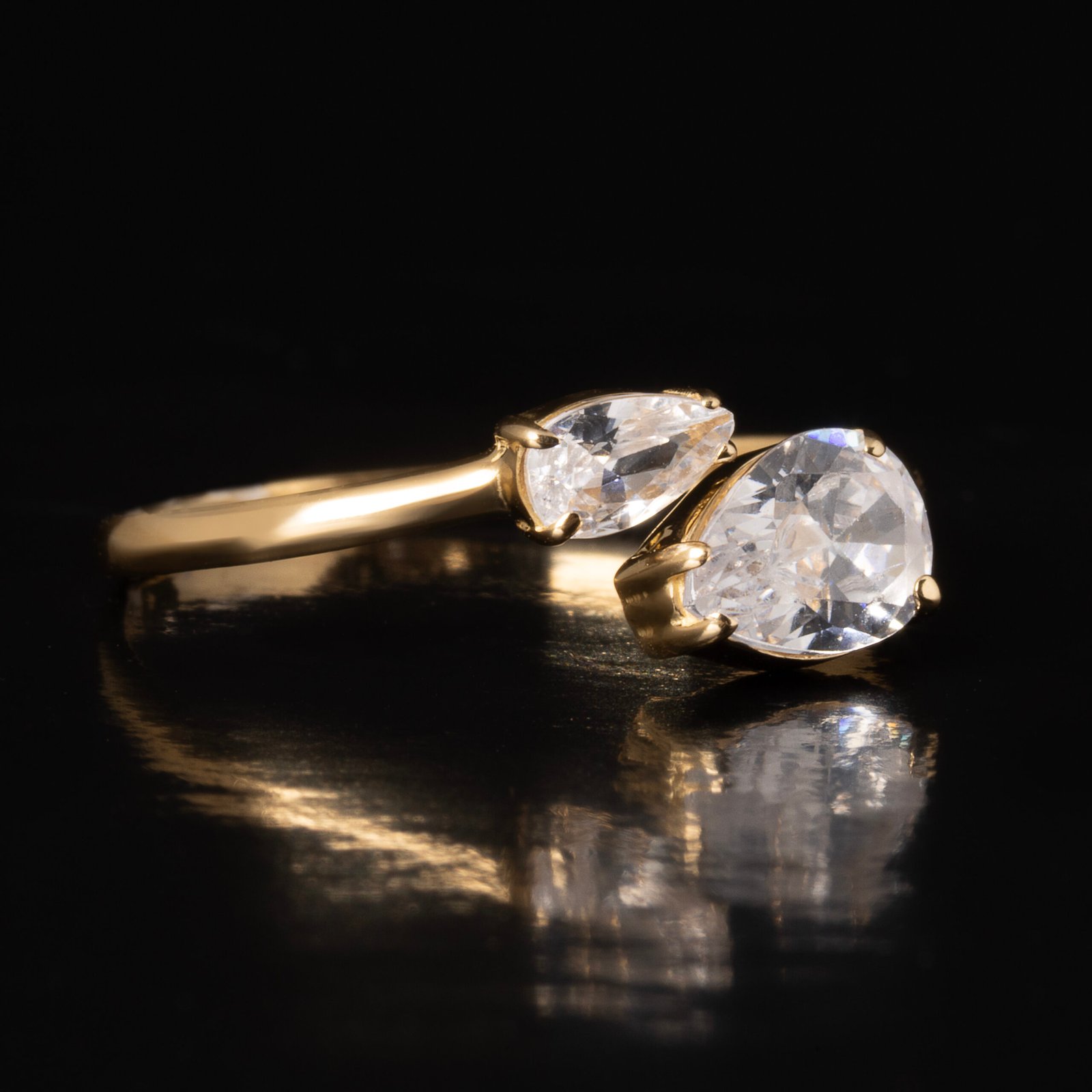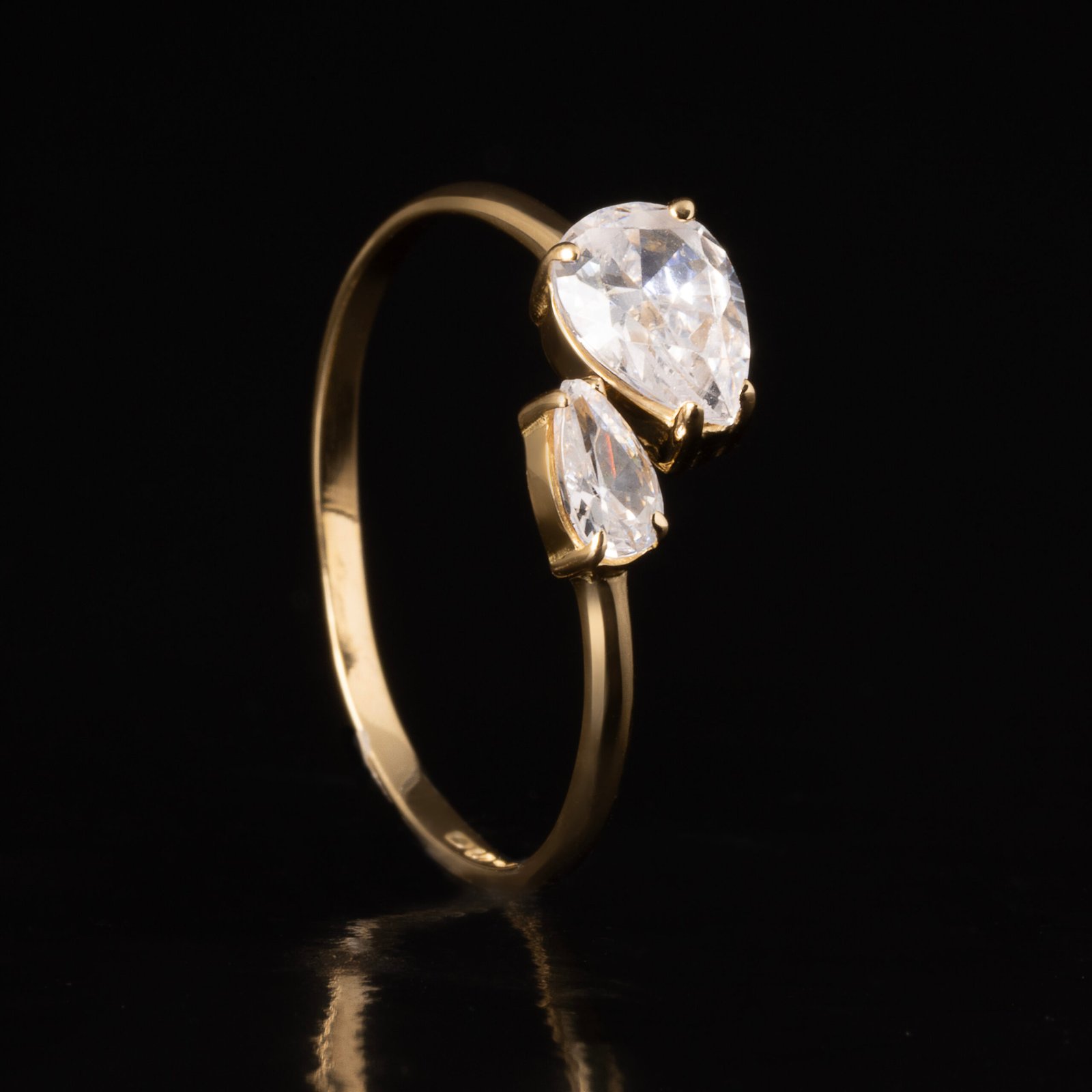 Delicado e sofisticado, o Anel Gota em Ouro 18K com Zircônias encanta pelo equilíbrio entre elegância e brilho. Seu design em formato de gota, com zircônia central lapidada e pedras menores ao redor, reflete a luz de forma sutil e luxuosa. Produzido em ouro 18 quilates, é uma joia versátil e atemporal, ideal para valorizar qualquer ocasião.