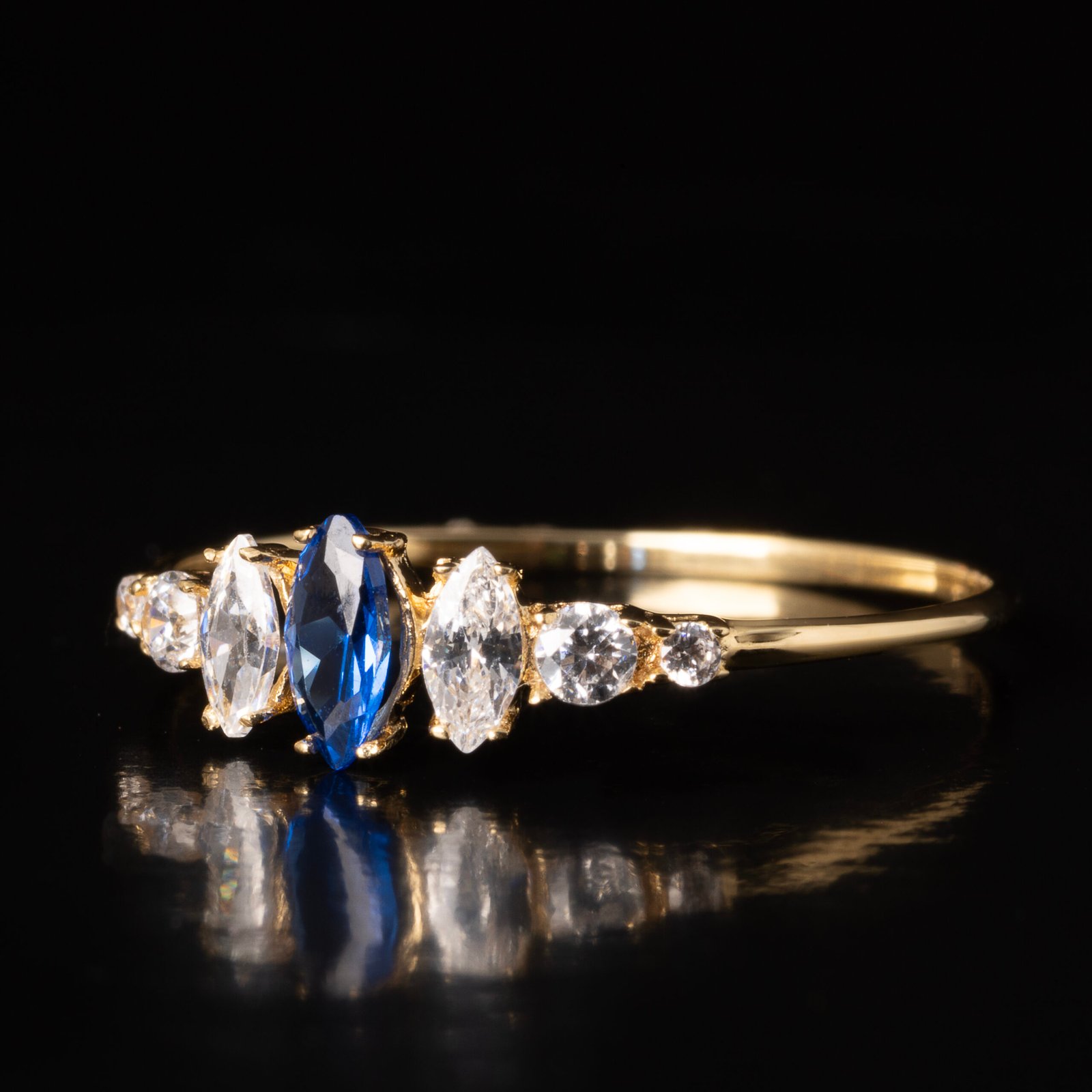 Elegante e atemporal, o Anel Pedra Azul em Ouro 18K com Zircônias destaca-se pelo contraste perfeito entre o brilho do ouro 18 quilates e o tom intenso da pedra azul central. As zircônias cravejadas ao redor acrescentam luminosidade e sofisticação, resultando em uma joia delicada, marcante e ideal para qualquer ocasião.
