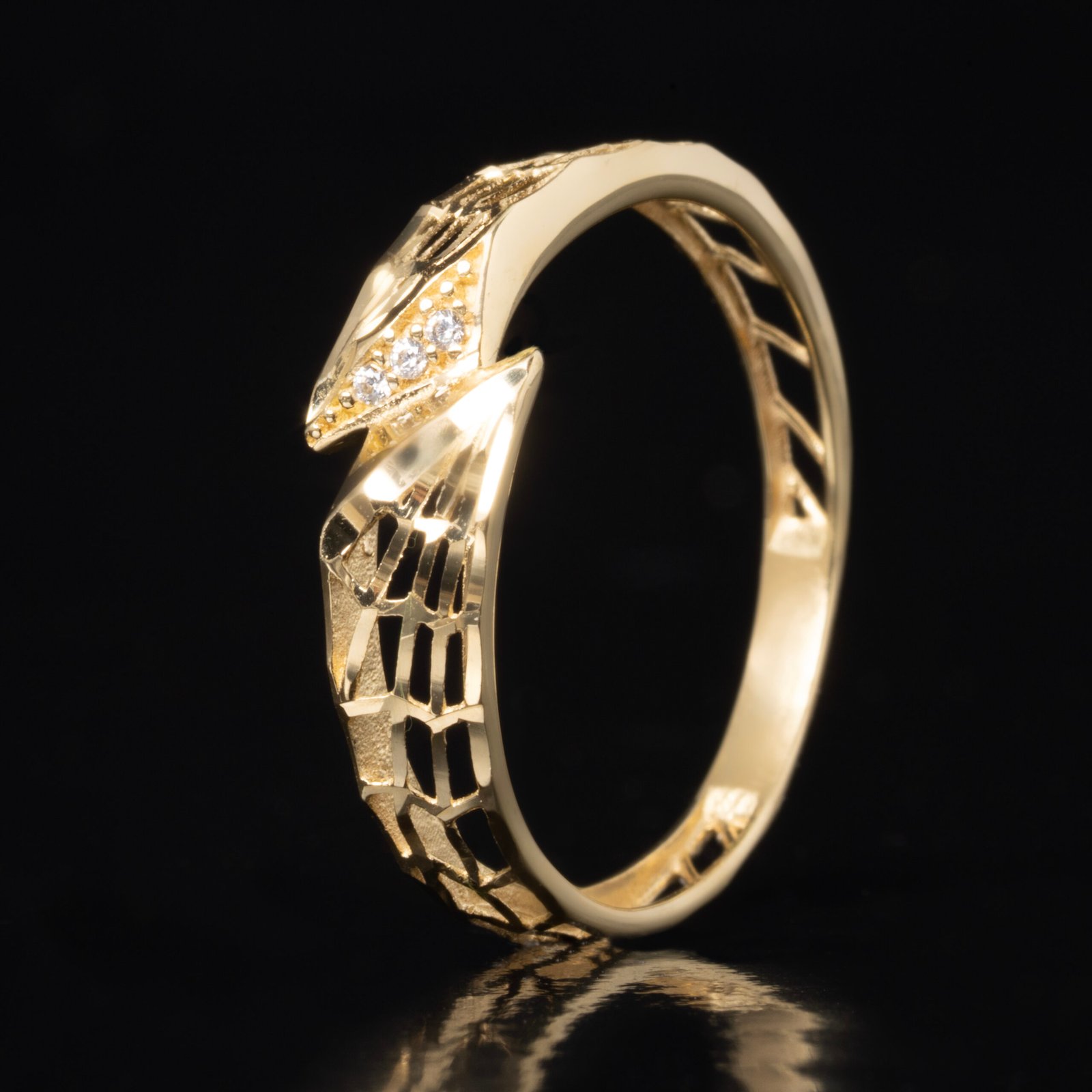 Anel trabalhado e vazado em ouro 18K, com detalhes realçados por zircônias brilhantes. A peça combina leveza, modernidade e acabamento sofisticado, oferecendo um visual elegante e marcante.